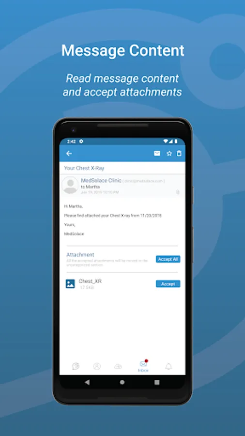 MedSolace is the first HIPAA-compliant application that provides users with a personalized and highly secure cloud space to which they can easily upload their medical records, diagnostic images, lab results, vaccination documents and more. Users will also receive targeted healthcare awareness and screening campaigns to stay up-to-date with health.