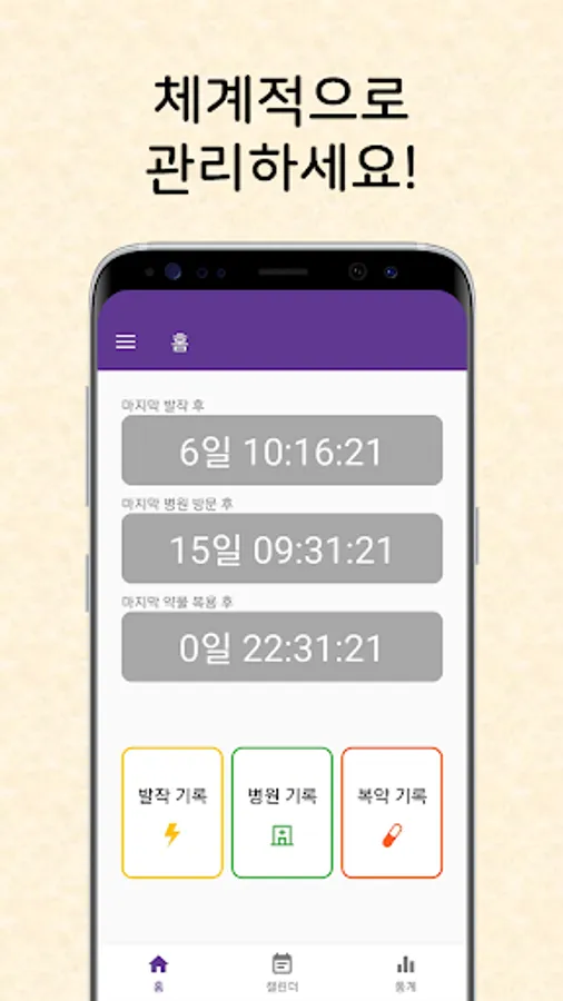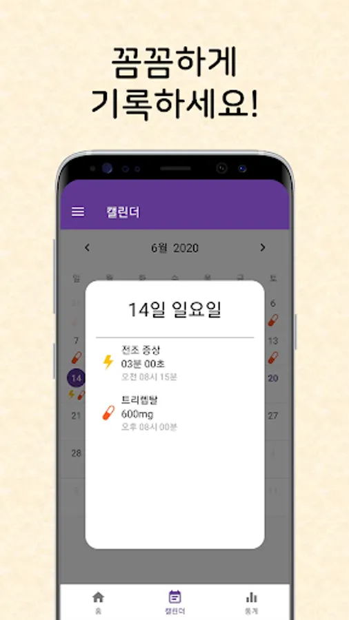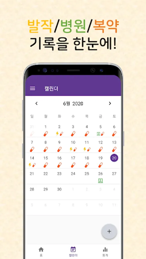 -Three icons make it easy to view seizure records/hospital records/dose records on a calendar.