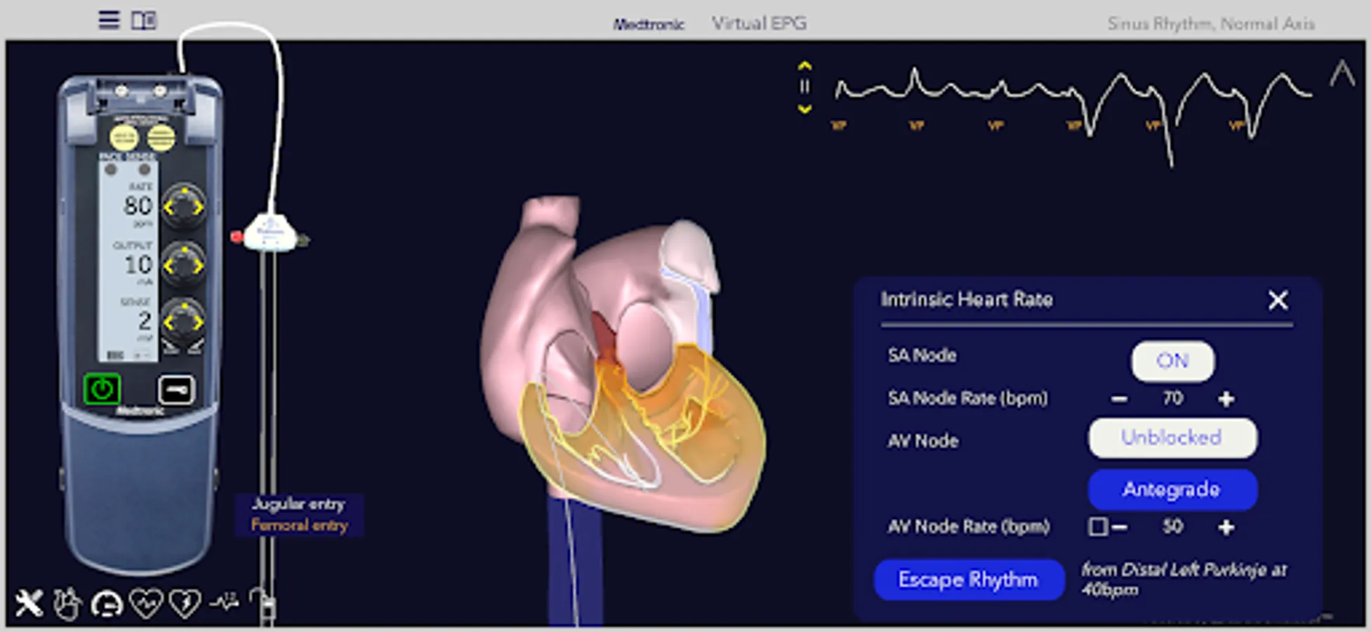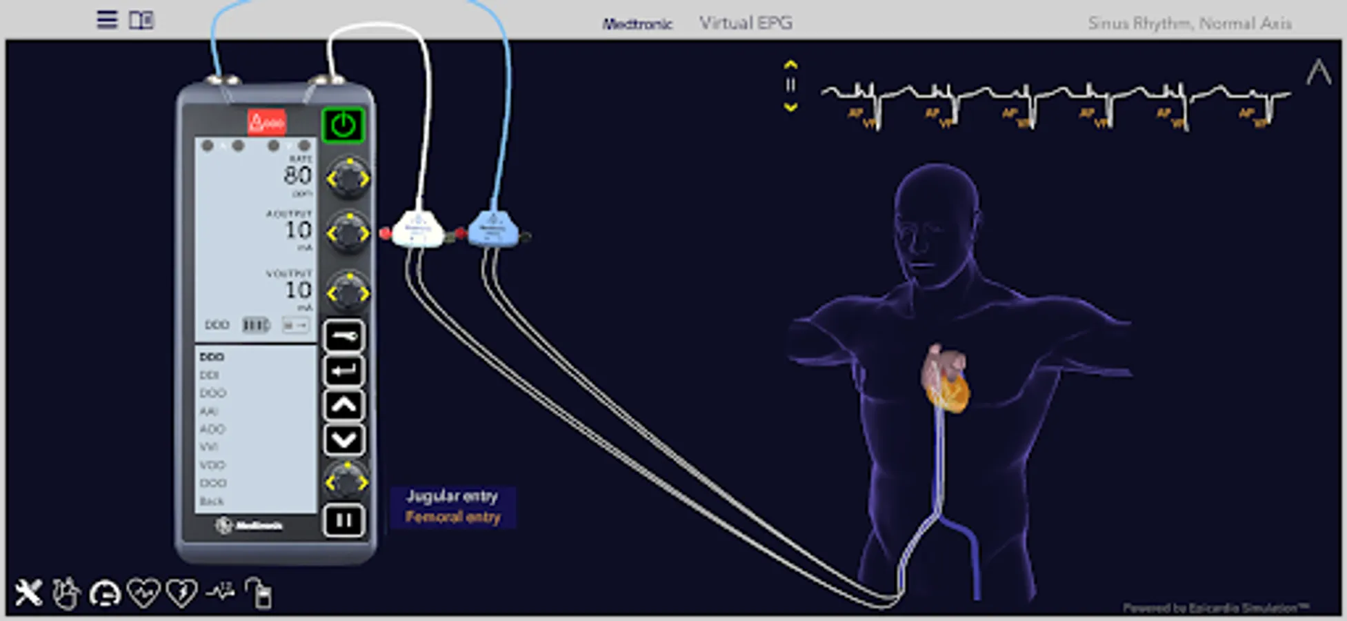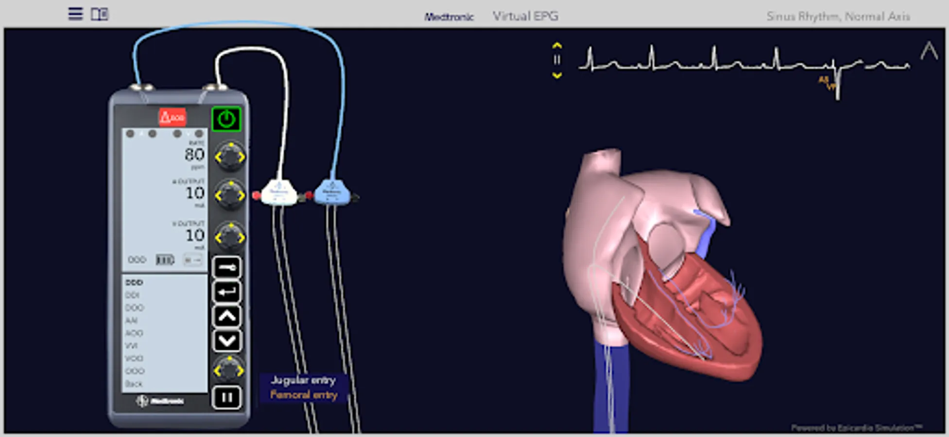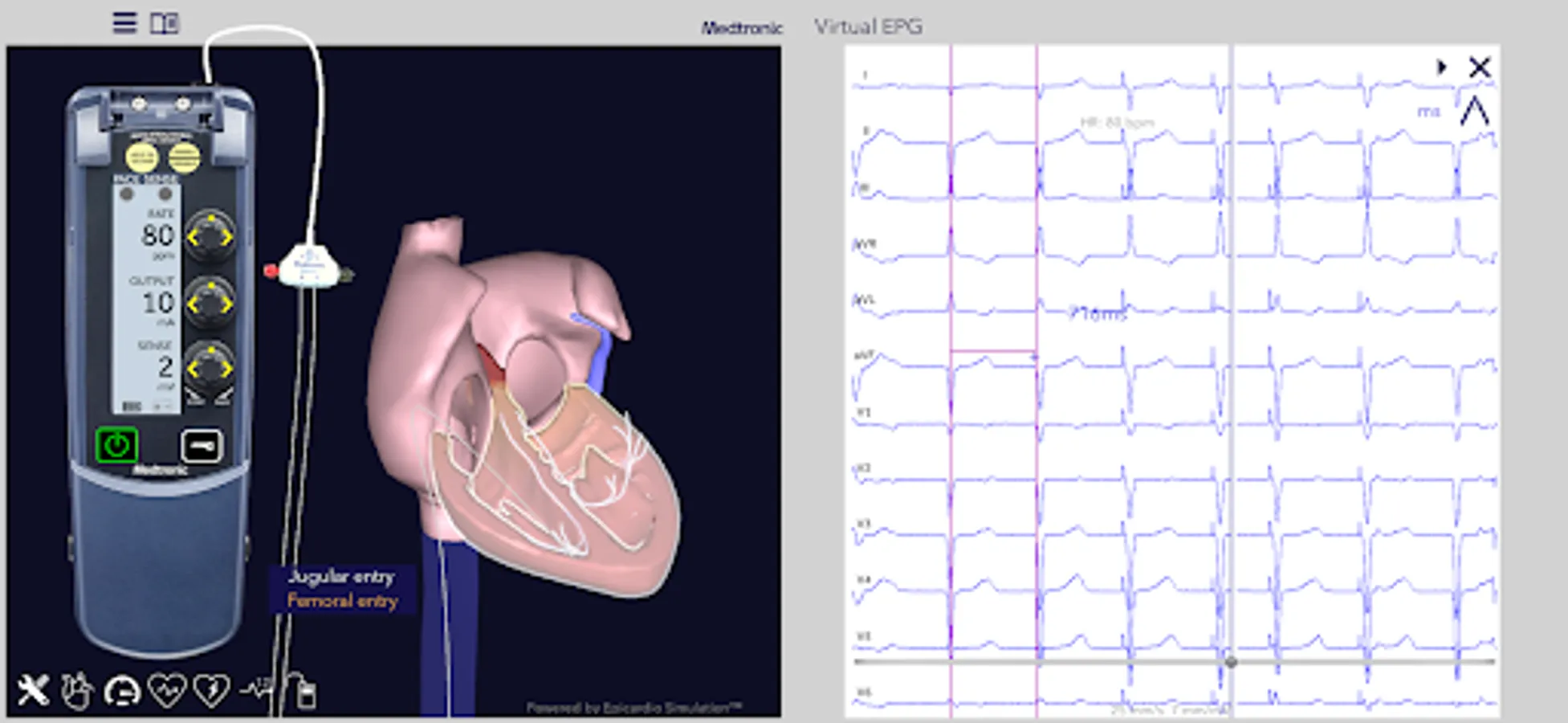 The course consists of interactive tutorials based on real-time 3D heart simulation, complete guide of the single-chamber temporary external pacemaker Medtronic model 53401 EPG and overview and basic operation of the dual-chamber Medtronic model 5392 EPG.