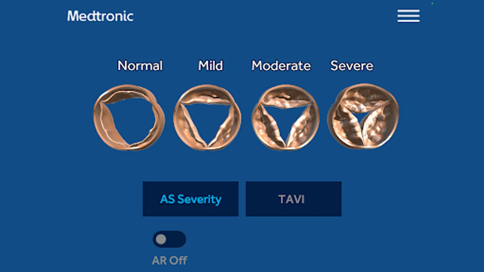 This Augmented Reality (AR) app provides an educational experience on the Medtronic Aortic Stenosis (AS) Evolut (TM) Transcatheter Aortic Valve Implantation (TAVI) therapy for healthcare professionals to learn more about the disease progression and treatment need of aortic valve stenosis in order to be able to better educate their patients.