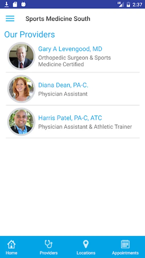 This is the mobile app for Sports Medicine South, an orthopedic medical practice located in Georgia. With this app our patients can get more information about our practice and also interact with our staff. The app includes information about our providers and locations including directions. The app also allows patients to request appointments, prescription refills, and send messages to our staff about any questions in a fully hipaa-compliant fashion