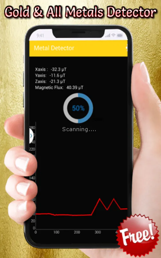 Find all metals around you by using metal detector free app, the best metal finder application! This all metals scanner works offline to find metals near your area easily in view steps. Stud Detector 2023 is a great metal detector body scanner tool for scanning the magnetic field just by using your phone. It is a must have app if you have a smart phone. This metal detector app for android is the best app for detecting gold measures magnetic field with an embedded magnetic sensor.=-The magnetic field level (EMF) in nature is about 49ΞΌT(micro tesla) or 490mG(milli gauss); 1ΞΌT = 10mG. When any metal(steel, iron) is near, magnetic field level will increase, it's really easy to use for gold metal detecting.