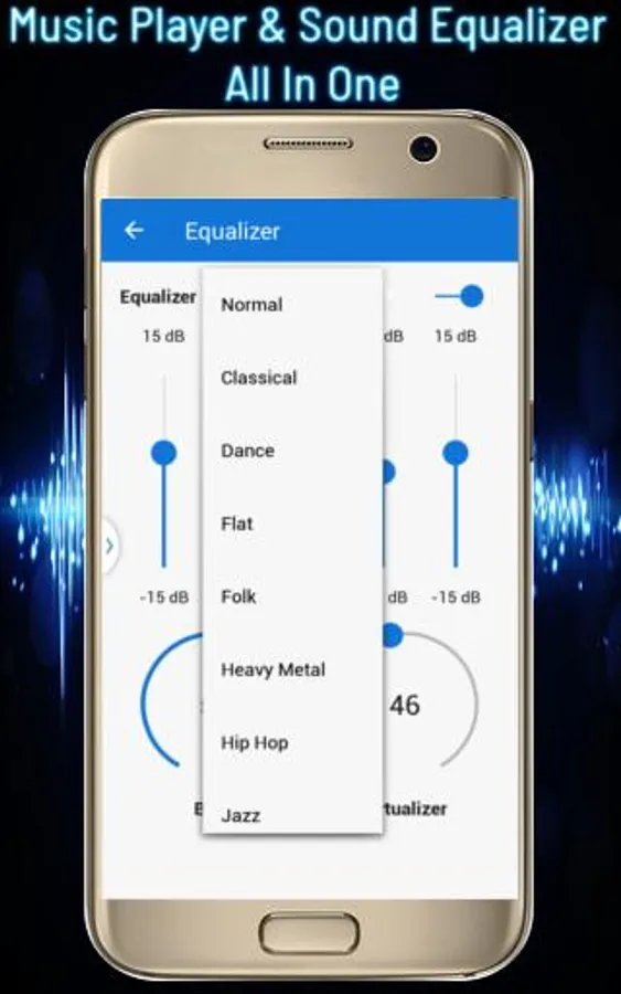 Music Equalizer with Audio Equalizer has a sound volume slider from where you can control sound bass and sound virtualizer. You can easily improve sound and audio quality on your device to enjoy your sound track volume level withy bass booster at MAX. In music equalizer or audio equalizer, one can get all adjustments volume buttons at one place.