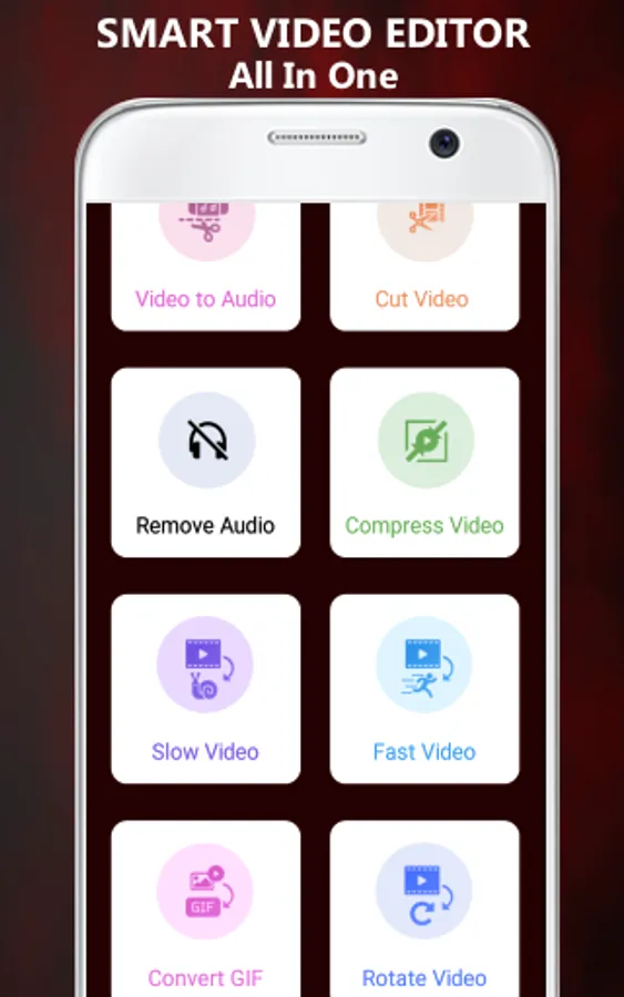 AIO Video Editor is The most powerful and complete Video Editor! It has all the features you would ever want in an Editing Video App! This free video editing tool can Edit, cut video, Extract image, Remove audio, compress Video, Slow motion, Trim Lapes, Covert GIF, Rotate Video, Fast motion and much more awesome movie editing features.