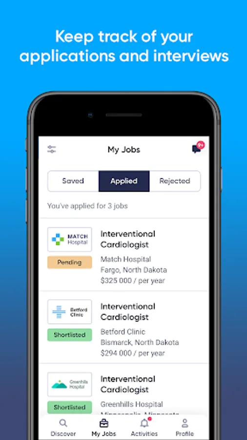 Medvocation also allows you to talk directly with recruiters in real-time, thanks to our in-App chat facility.