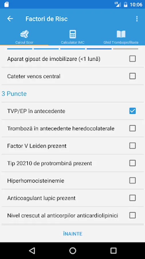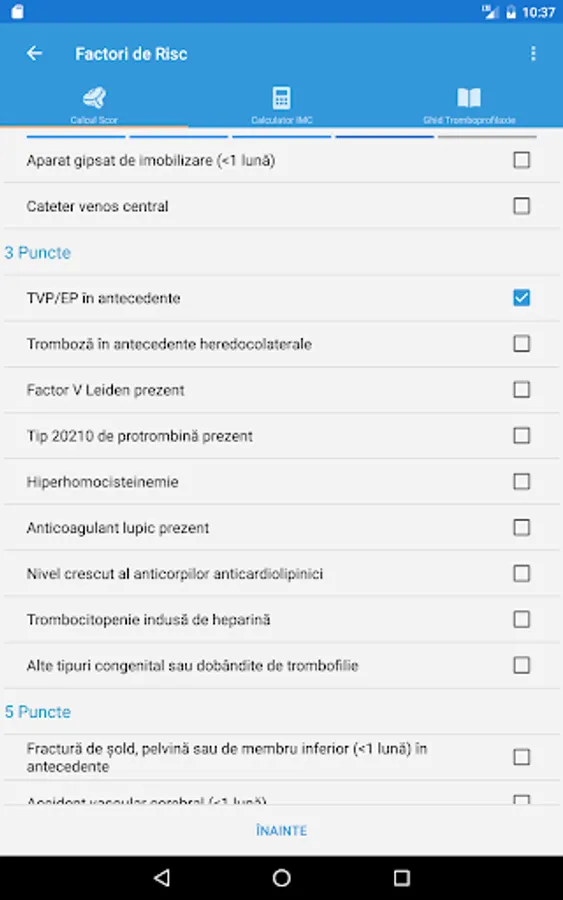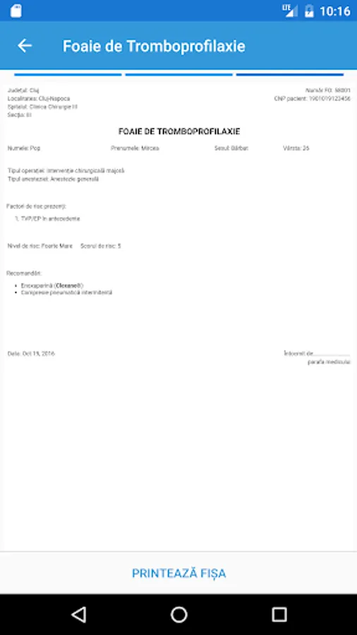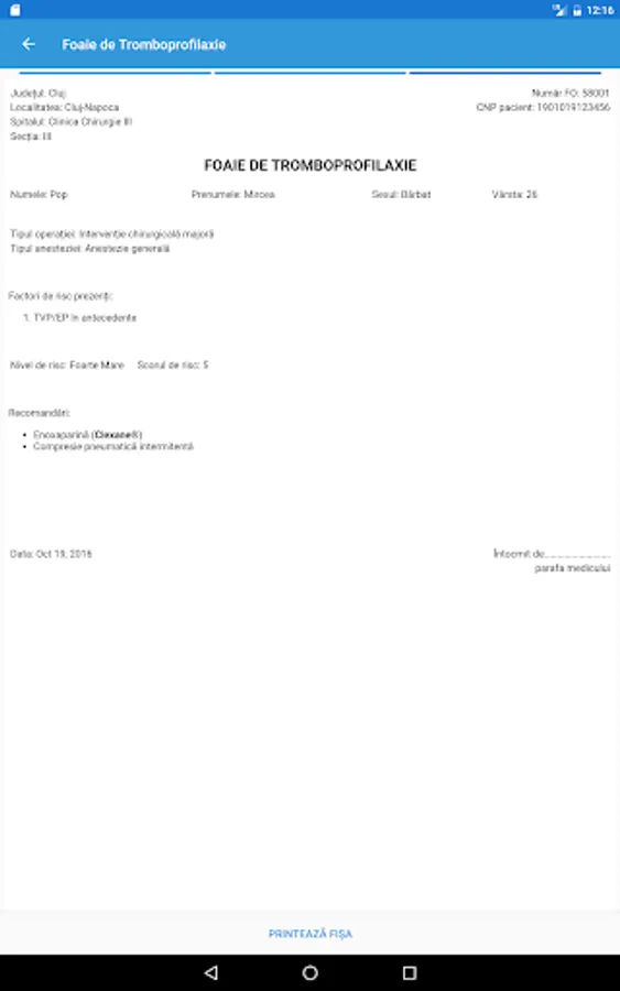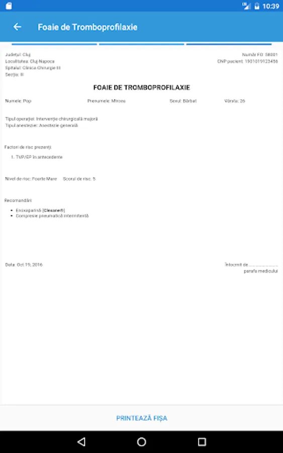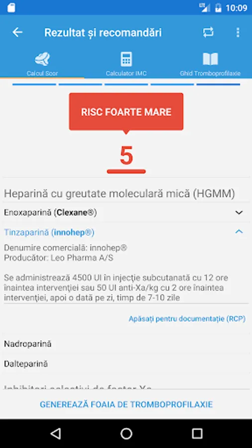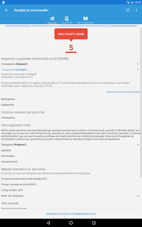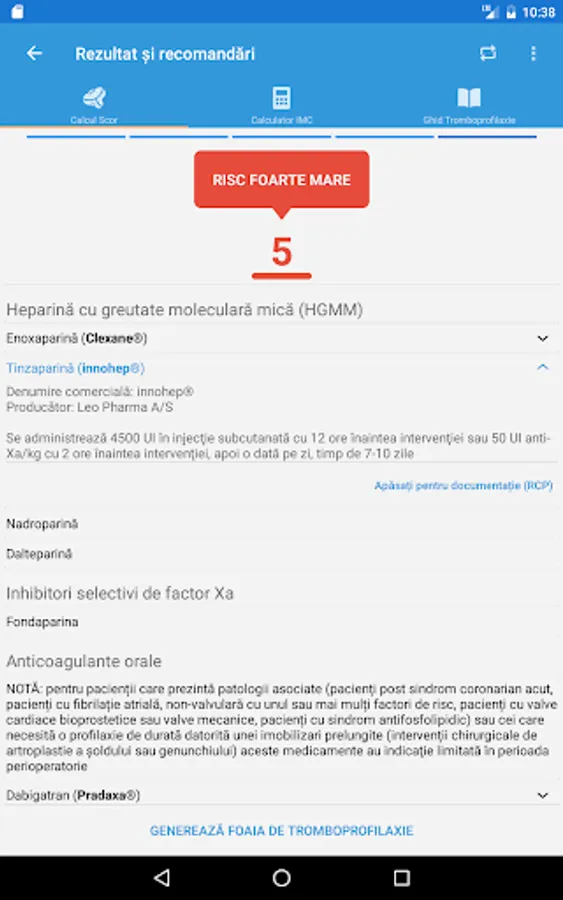 By completing a questionnaire with the patient data, the app generates a sheet of thromboprophylaxis can be printed and attached sheet clinical observation of the patient. The app contains "Guidelines for the prevention of venous thromboembolism. Issue II "which can be accessed by the user by pressing the" Guide thromboprophylaxis "and also allows to calculate body mass index (BMI) of the patient through a computer.