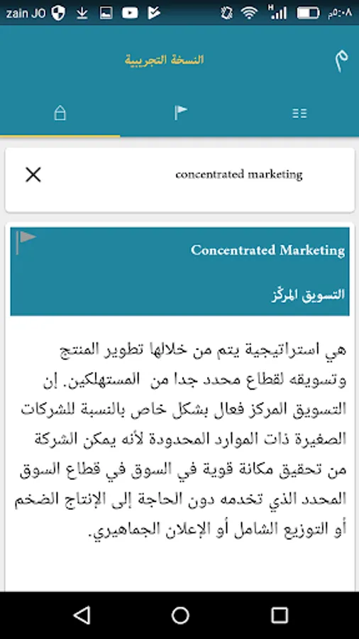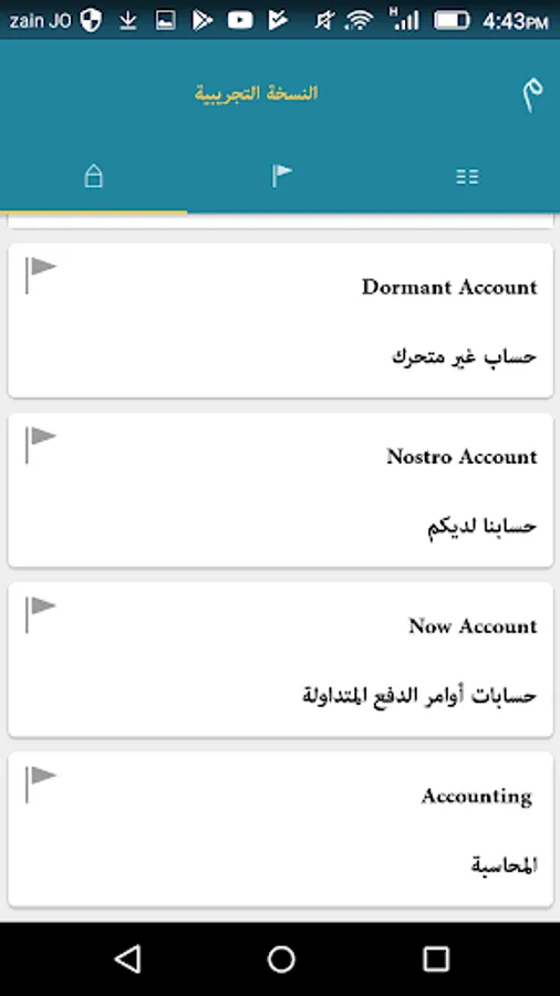You can enter keywords in Arabic or English, and the application will search within more than 4000 and show the term translation, definition and related terms.