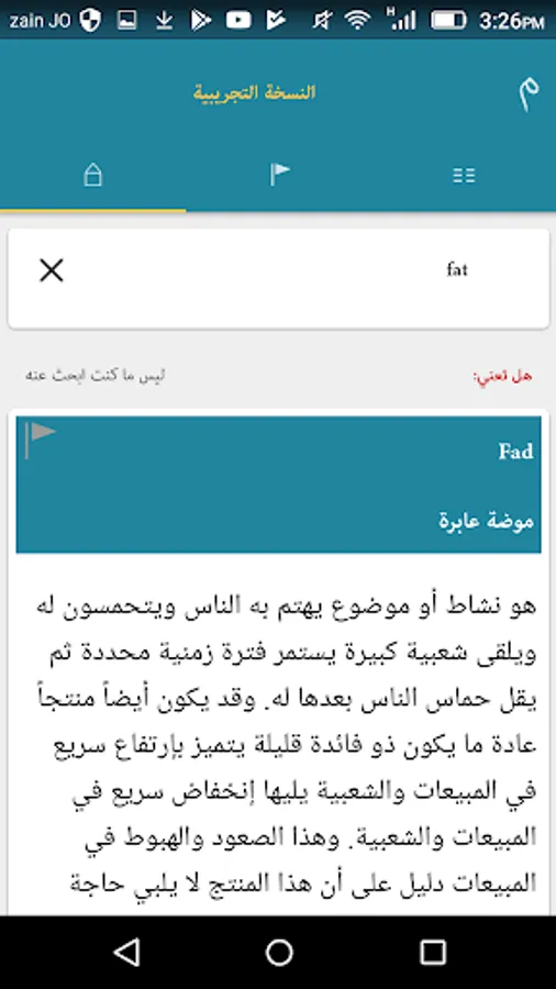 This is the version of the application, the first beta version. In the absence of the term to be translated and its definition, please let us know and will work to add it once. Please let us know your comments and suggestions about the application to be working on its development.