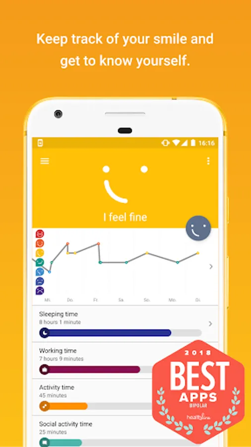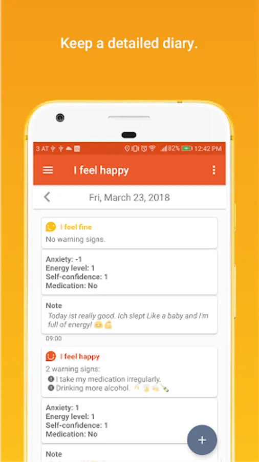 UP! is a highly automated mood diary. Track your personal warning signs of depression, mania and hypomania effortlessly when needed. UP! supports you in keeping a daily journal of your emotions and habits in the blink of an eye. With UP!, managing, monitoring and analyzing symptoms of bpd, depression and bipolar just became easier.
