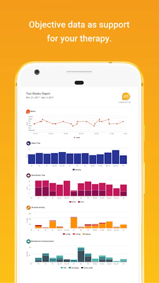 • Recommend the UP!Doctor web application to your psychiatrist. Connect to it by using a pairing code. Share information effortlessly.