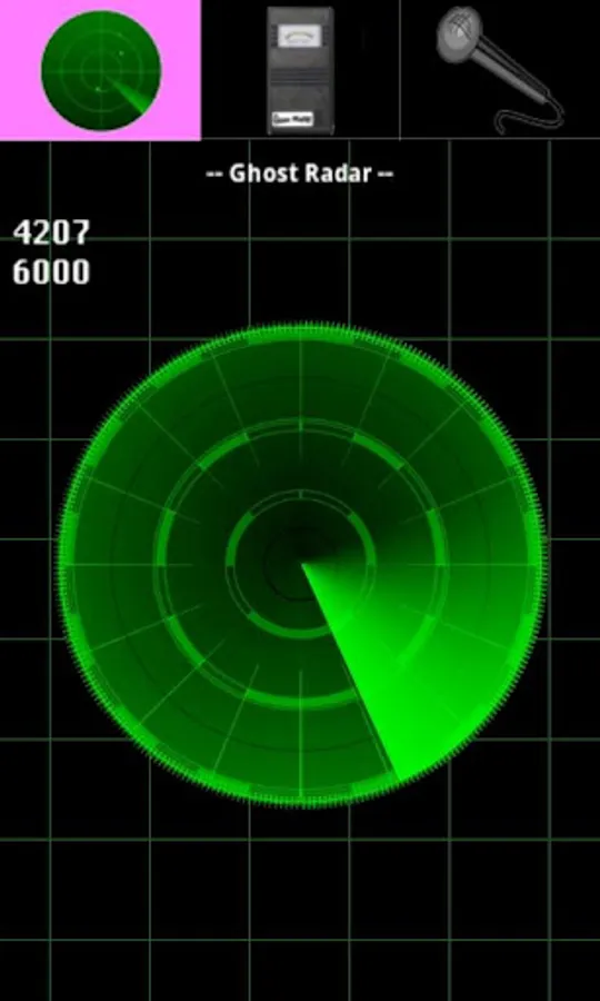 This app shows a radar with lurking ghost around you and some ghosts try to talk with you, It is found that the radar range is about approximately 9 miles.