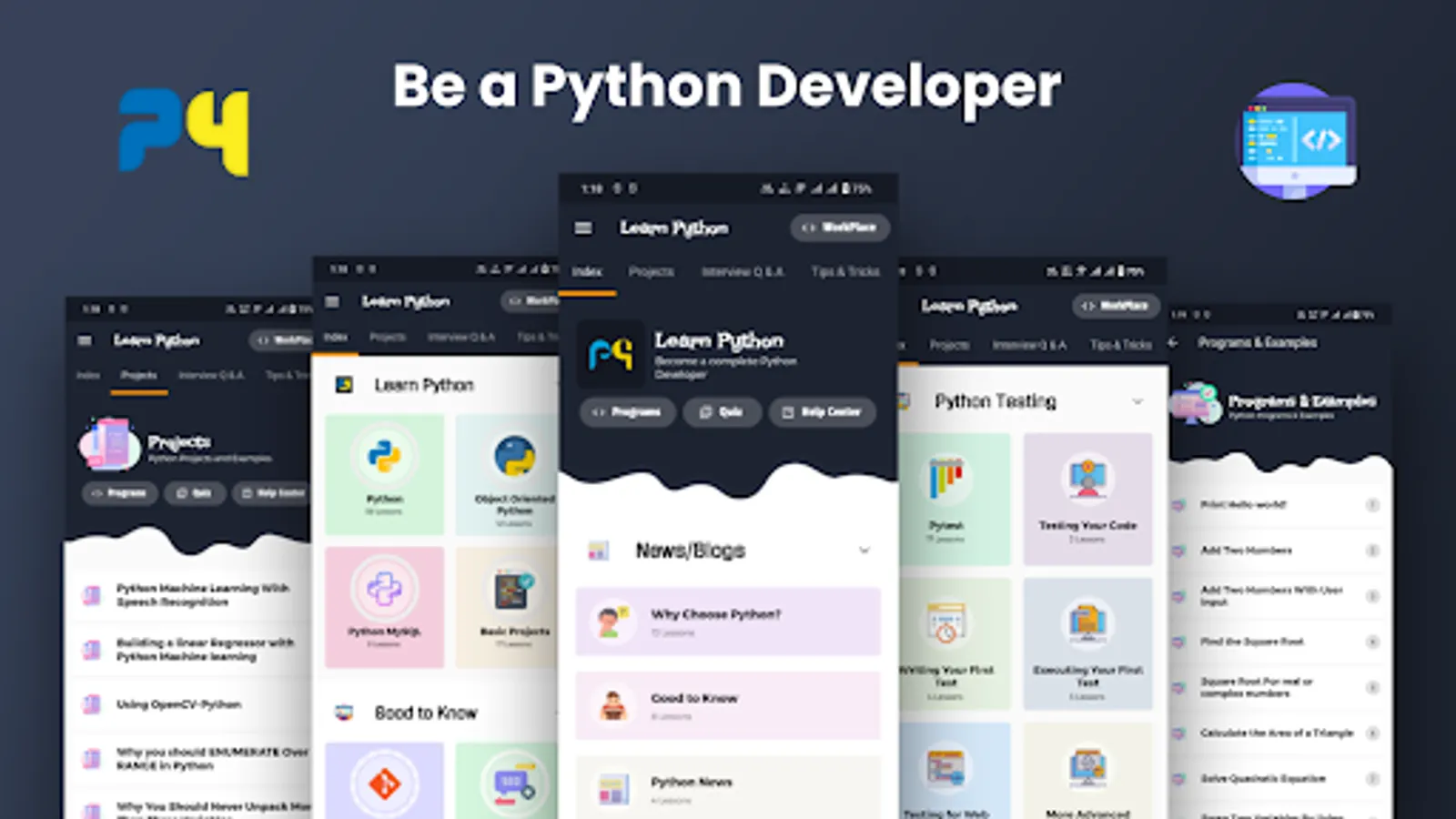 Our learn python programming app provides the best study materials for all the beginner and Expert level programmers who want to learn the python programming language and want to build strong fundamentals to crack any job interview in this language.