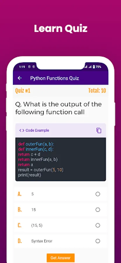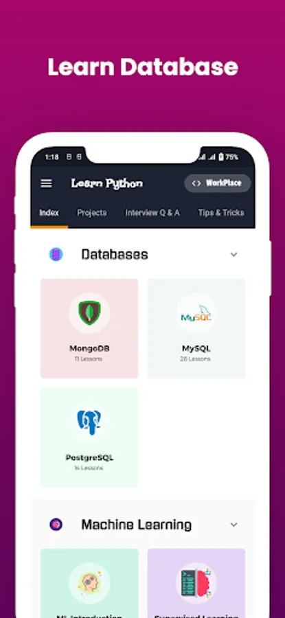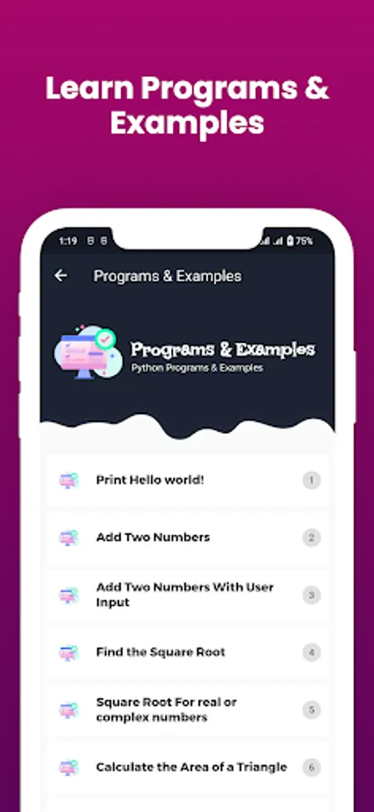 Learn Python is a must have app for all coding learners or computer science students to learn python programming language whenever they want and wherever they want. Whether you’re preparing for a python interview or any exam that requires python programming knowledge, you can find amazing content on this programming learning app.