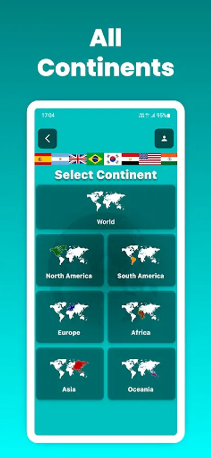 Choose your preferred game category and select a continent to dive into a world of flag trivia. With options to explore flags and capitals from all continents, including North America, South America, Europe, Asia, Africa, and Oceania, there's something for everyone.