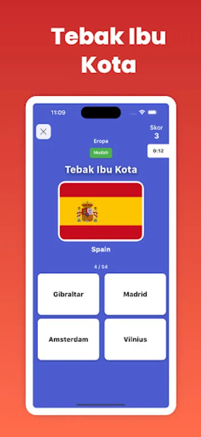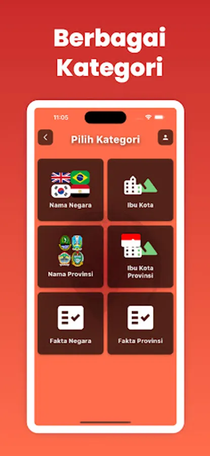 • Empat kategori permainan: Tebak Nama Negara, Tebak Ibukota Negara, Tebak Nama Provinsi di Indonesia, Tebak Ibukota Provinsi di Indonesia