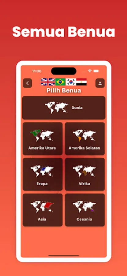 Pilih kategori permainan pilihan anda dan pilih berdasarkan benua termasuk Amerika Utara, Amerika Selatan, Eropa, Asia, Afrika, dan Oseania.