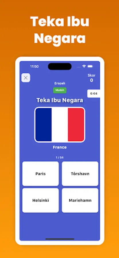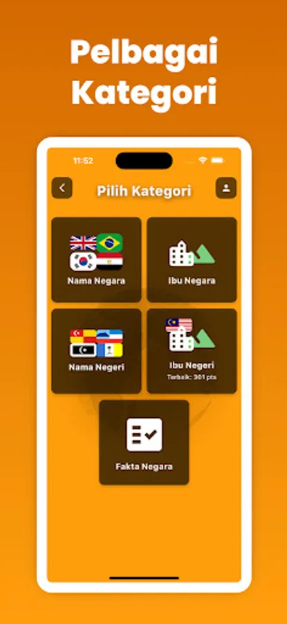 • Empat kategori permainan: Teka Nama Negara, Teka Ibu Kota Negara, Teka Nama Negeri-Negeri di Malaysia, Teka Ibu Kota bagi Negeri-Negeri di Malaysia