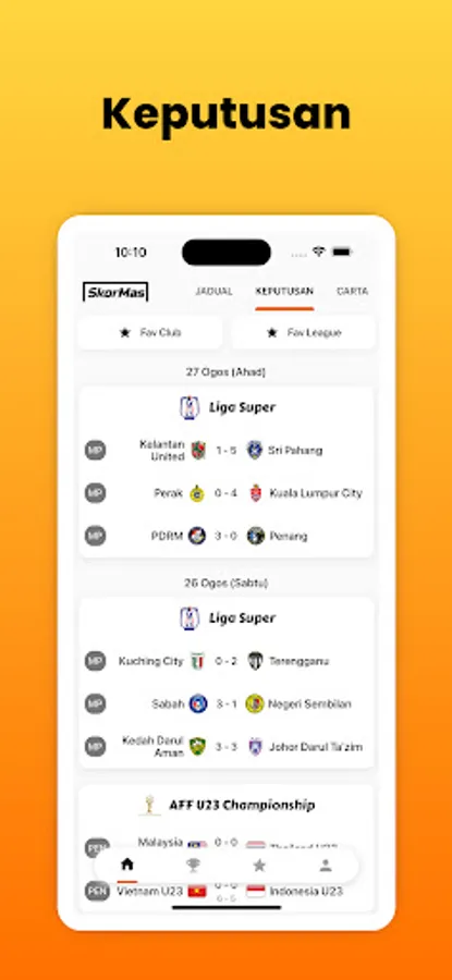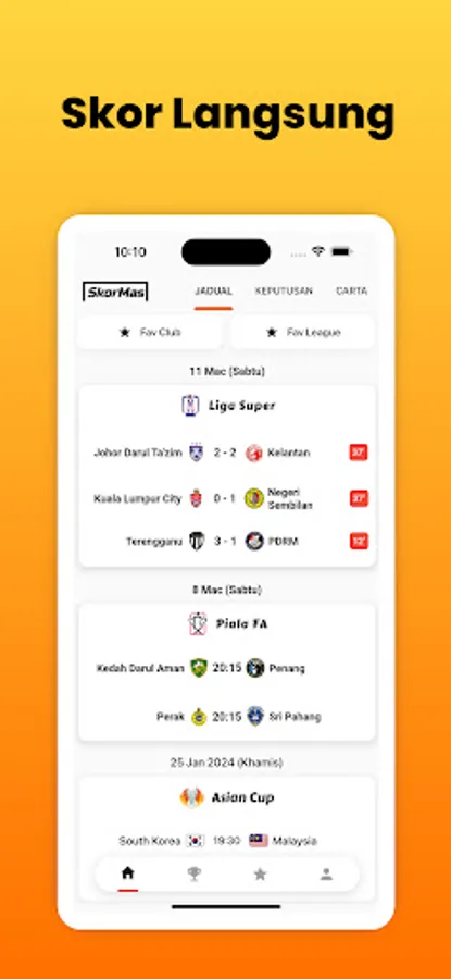 This app covers various domestic and international leagues related to clubs in Malaysia including international matches.