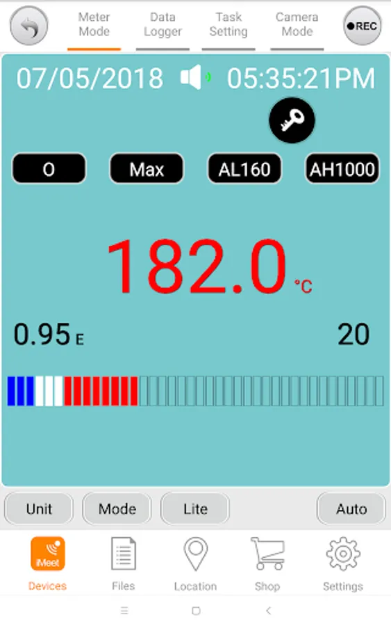 - You can connect MEET's product with your smart phone through Bluetooth 4.0, If connected, the measure data will display on iMeet, you can record the data to file, you can save the data by taking a photo, you can location your device's location by Baidu Map.etc