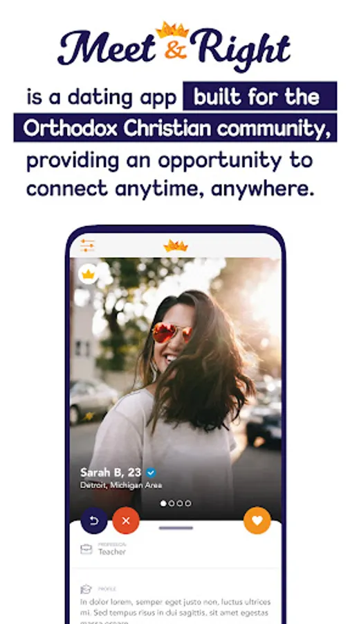 Meet & Right is an app built to make Orthodox Christian dating a little less weird! Created for the Orthodox community and with our cultures in mind, to help our community connect anytime, anywhere.