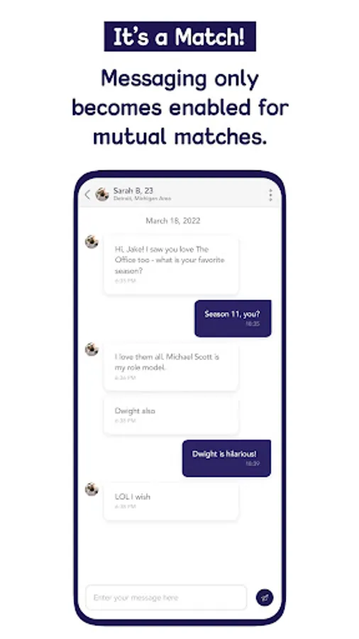 - Be Respectful. You’re here to find love after all! We do not tolerate harassment, discrimination, or threatening behavior. Any illegal activity can and will be reported to authorities.