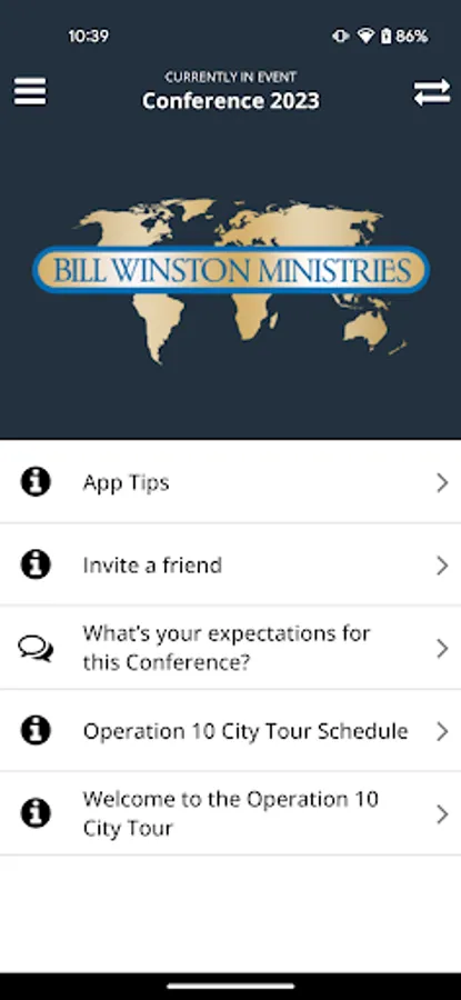 Bill Winston Ministries Events is an event app for conferences and events to stay connected with all you need to know. Access agendas, speaker bios, and other relevant information about an event. Interact through live polling, interactive surveys, live Q&A and various networking activities. Stay connected with push notifications and never miss a thing! Let the Bill Winston Ministries Events app guide you through the entire event experience.