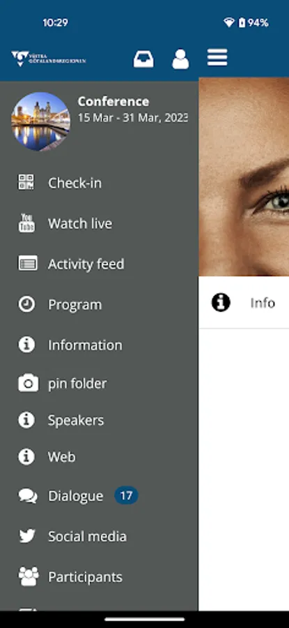 Will you attend a meeting or conference arranged by Region Västra Götaland? Please download this app for a better experience. After installing the app you can enter the code (eventkod) of your event to get started.
