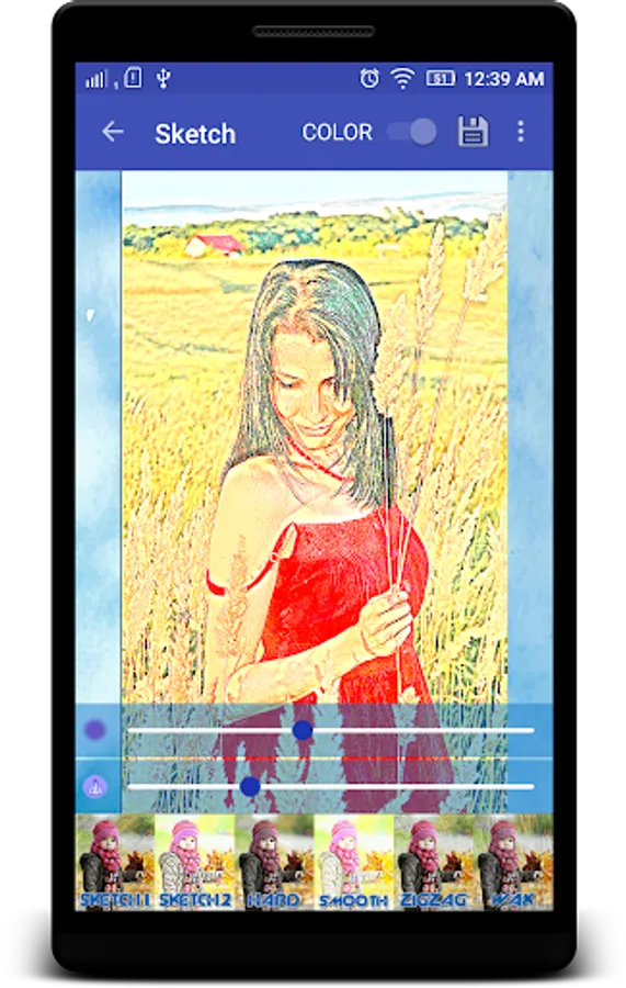 This application gives you wide range of filters which includes pencil sketch, oil painting sketch, wax sketch, crayon sketch, black and white effects and many more.