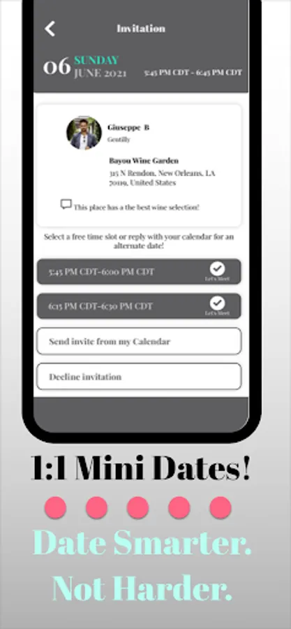 - watch your date calendar fill up with multiple 15 minute mini dates