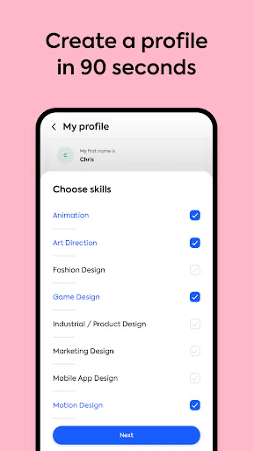 1. Create a free profile by listing your skills and expectations. CV is not required.