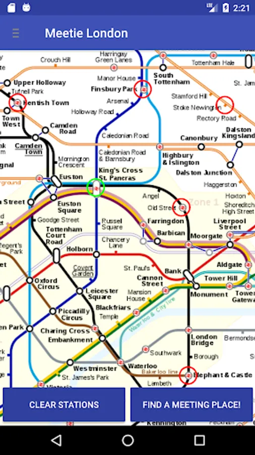 Tell Meetie London which Underground, Overground, DLR or Crossrail station each of your friends are coming from, and Meetie London recommends places where you could meet.