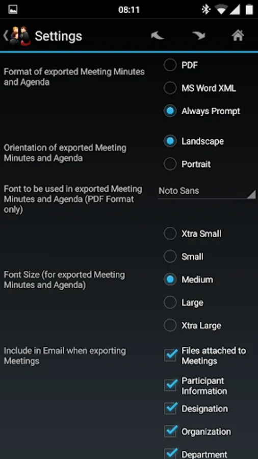 4) Export/Email Meeting Minutes into a professional, simple, and clear PDF, MS Word XML, or HTML format. The Custom Labels feature within settings allows you to generate meeting minutes in multiple languages (please note that all languages might not be supported).