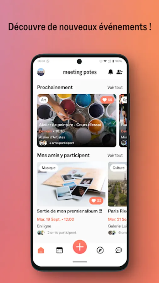 The 1st social calendar that intelligently fills up with events and outings according to your interests and those of your loved ones.