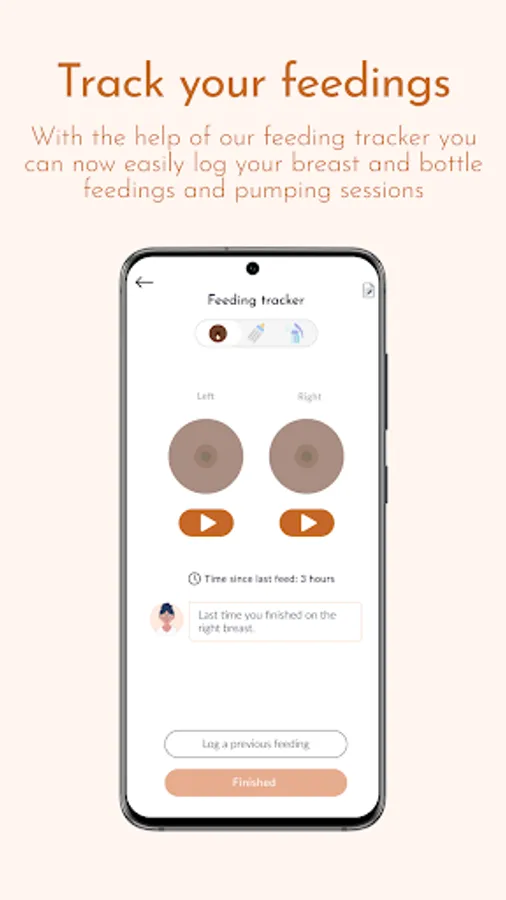 Feeding your baby is a big part of your daily life as a mother. But if you find yourself struggling, you are not alone, as most new mothers experience problems when breastfeeding. LEIA's feeding tracker will help you keep track of both breastfeeding and bottle feeding to make all parents feel supported, no matter how you feed your baby.