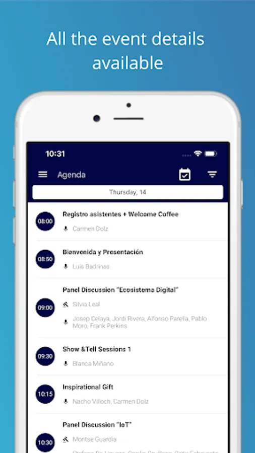 - View the detailed agenda and session information of each day. Also create your personal schedule.