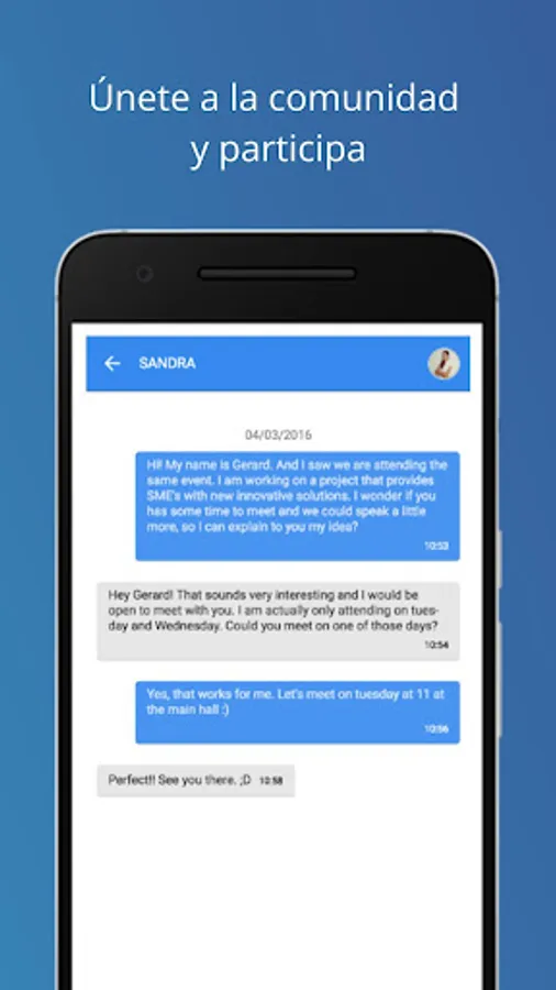 - Information, Agenda and Speakers: Save all the essential information of the event in your mobile. Check out the program and create your personalized agenda.