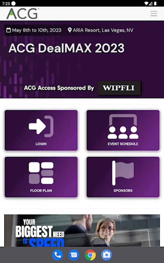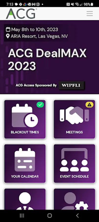 The ACG Access app for attendees at ACG events, including DealMAX, allows users to take the tools available in ACG Access’s online portal on-the-go. Users can schedule unlimited one-on-one meetings at their convenience, search highly detailed attendee profiles on demand to find exactly the right dealmakers you want to meet with, and keep an organized and comprehensive view of your days at the conference. App users can also message other attendees, manage their meetings onsite, and stay current on everything happening at the event.