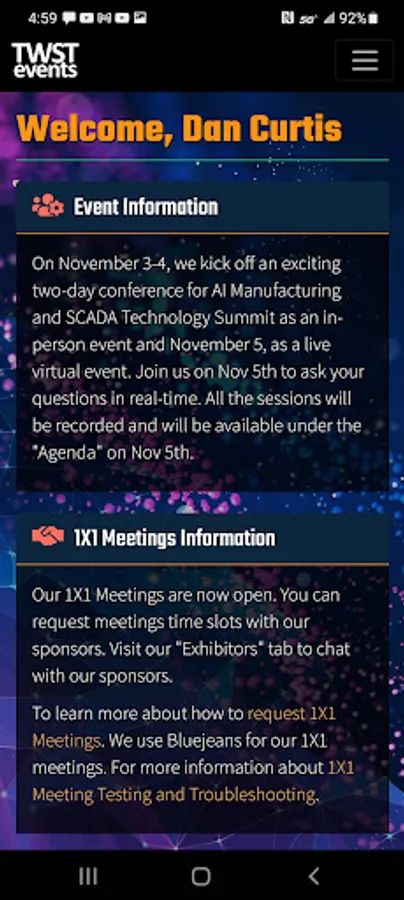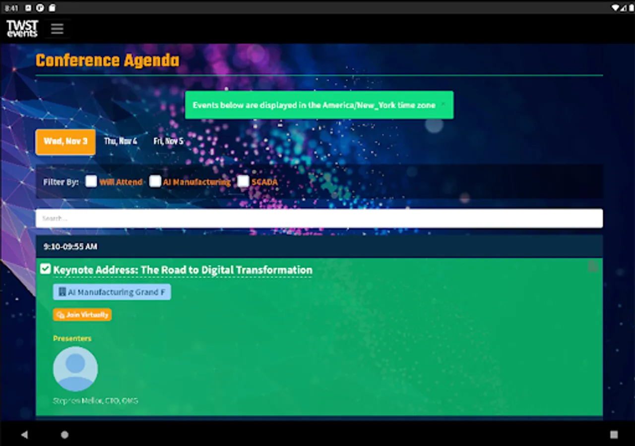 Use it to access the agendas, register, book 1x1 meetings, find a hotel room and much more. You can see all the future events from TWST Events, and use it to choose which ones to attend. And you can receive updates and notifications for events you have registered for.