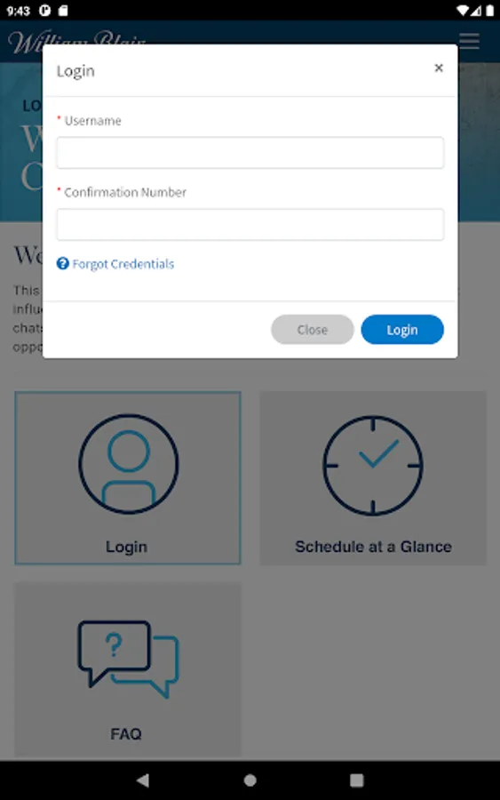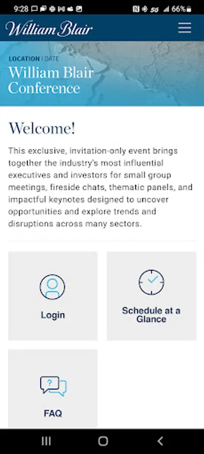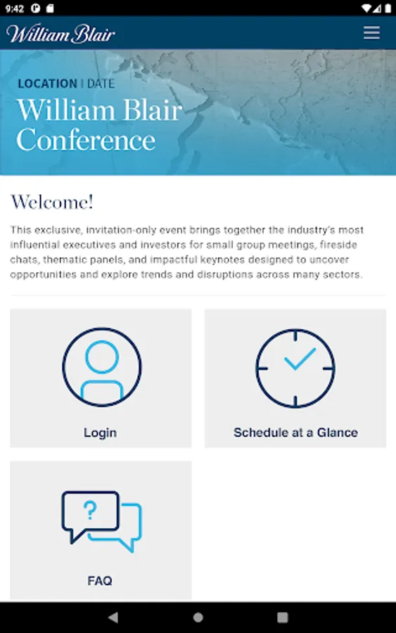 William Blair’s mobile app for client conferences. View your schedule and access conference content for an optimal experience.
