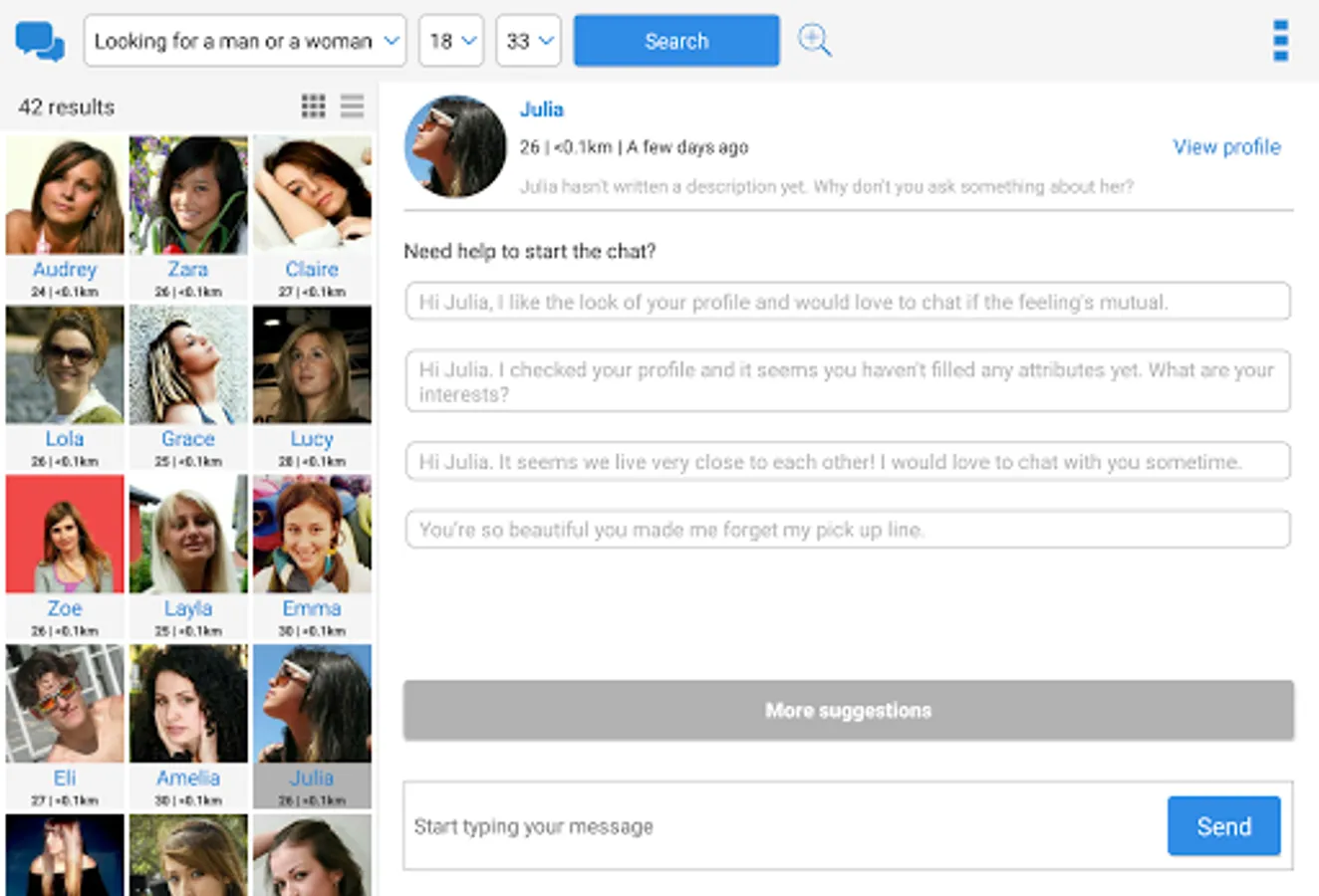 Create your profile for free in just a few seconds (with Facebook or your email) and start meeting new people:
