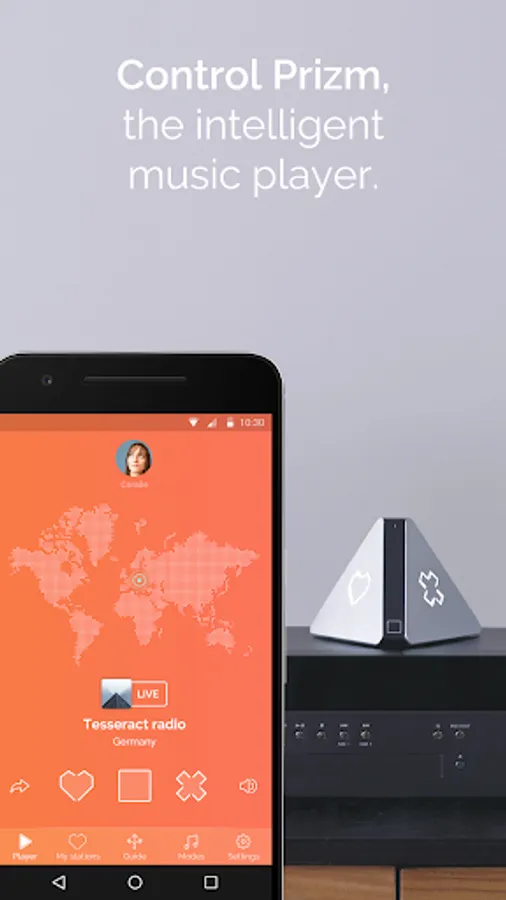 With the mobile app, control Prizm from anywhere you sit! Discover new stations easily or choose the music yourself. You have friends at home? Prizm identifies them and adapts the music to their taste. You can find the people detected in the app.