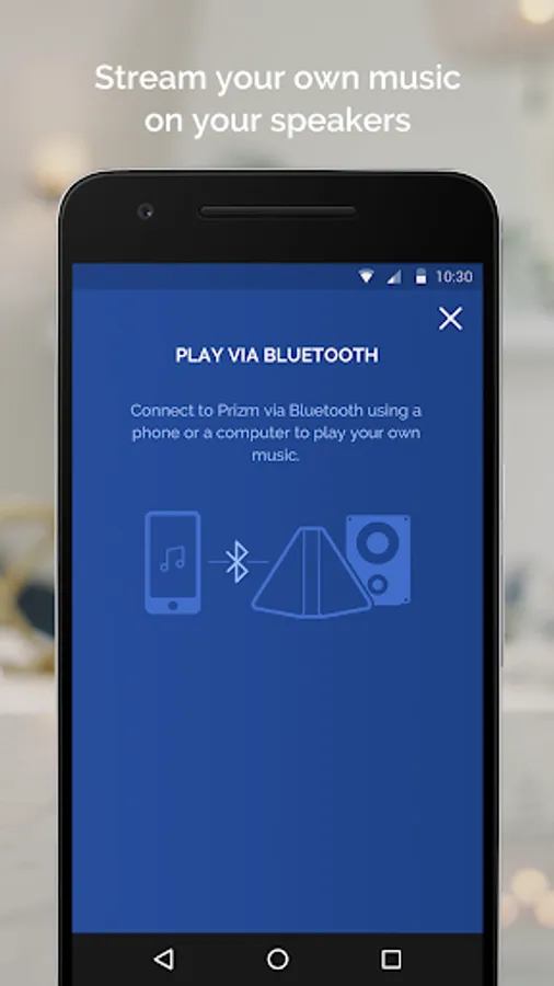 Plug Prizm into your speakers and open the app: the setup assistant guides you through a few simple steps to set up your Prizm.