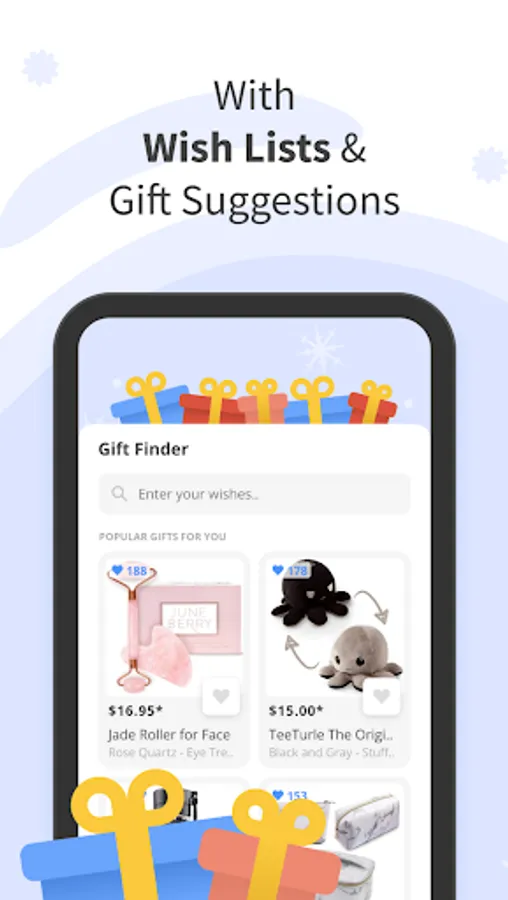 Looking for gift inspiration? The in-app popular gift finder is filled with thousands of the best Secret Santa gifts. Easily browse categories, see what gifts are popular, and add gifts straight to your wish list. Attending a birthday party, wedding registry, anniversary, housewarming party or babyshower? Use the popular gift finder to browse and find the perfect gift for any occasion.