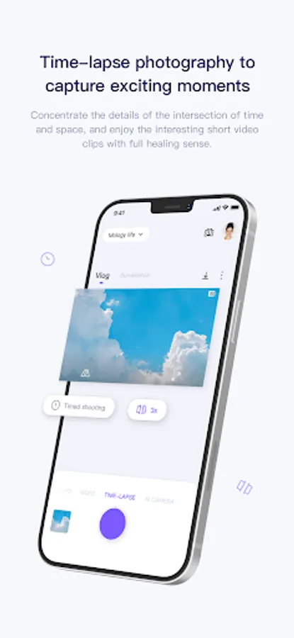 A dual-purpose imaging device that can be used for both creative shooting and housekeeping. It can not only take pictures of family members, pets, scenery, but also a first-person perspective. You can switch between Vlog and Nursing modes at will, and you can preview and control the whole process on the large screen of the mobile phone, providing a more concise and convenient video creation experience, and video sharing is one step faster.