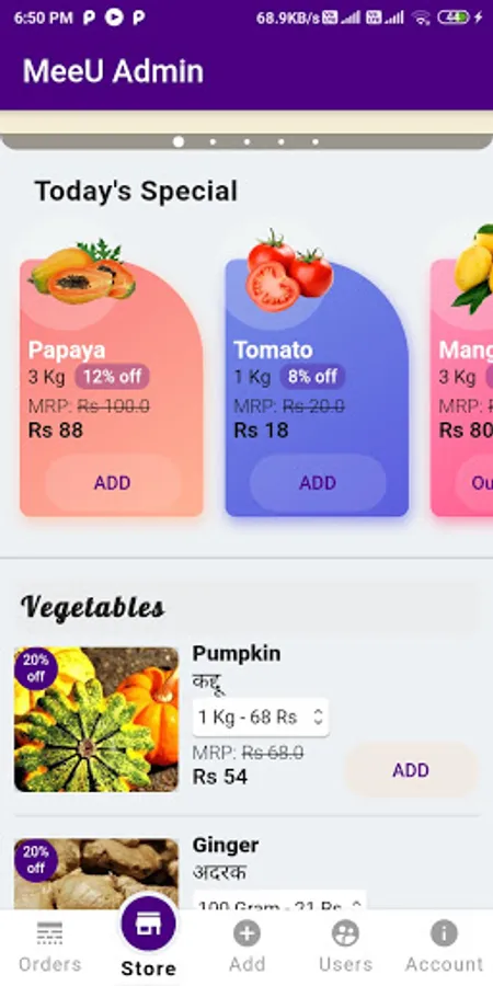 For fruits and vegetables that are as fresh as daisy, forego the supermarket and get everything delivered from our fresh fields to your doorstep, all at a tap of a button. MeeU Veggies bring to you fresh vegetables, fruits, and many more directly from “Farm” to “Home”.