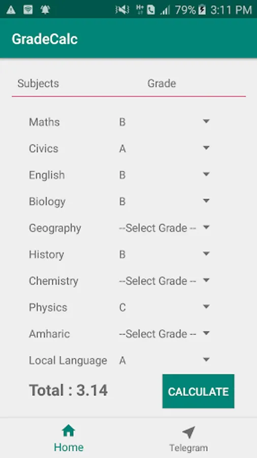 It is a simple calculator app for android platform. It helps students to calculate their national examination result by selecting obtained grade from the dropdown menu.
