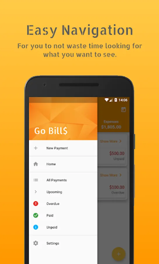 GoBills is an simple app developed to help you alway keeping track your bills and other payments, whem you save your payment data the alarm is automatically set to remind you about your payment before due date, this app also always warns you whem you have an overdue and unpaid payments.