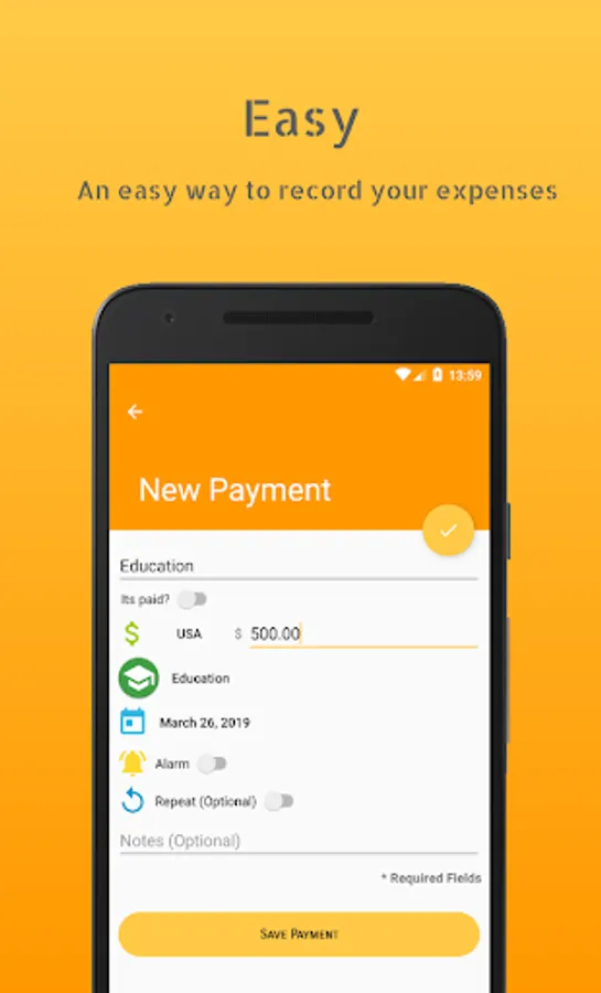 - Automatic alarm set to warn you about payments