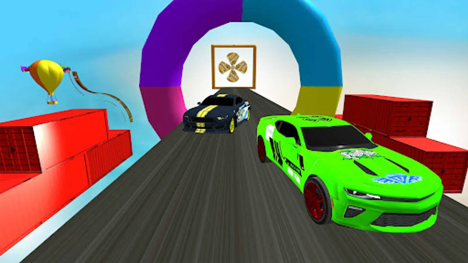 Hold the steering wheel to drive on impossible tracks of ramp car stunt game and enjoy cars🚘 drift racing.