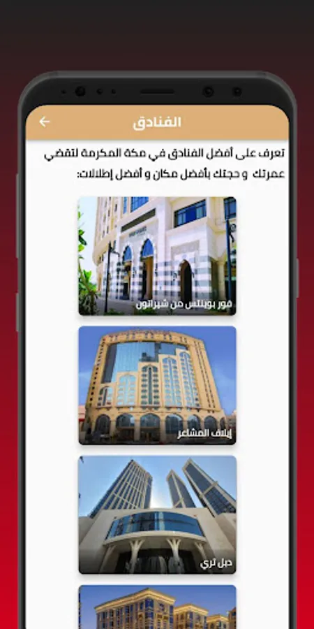 Four Points by Sheraton Makkah Al Naseem , Novotel Makkah Thakher City, Jabal Omar Marriott Hotel, Makkah , Al Shahba Hotel , Anjum Makkah Hotel , Le Meridien Makkah , Elaf Al Mashaer , DoubleTree by Hilton Makkah Jabal Omar , Jabal Omar Hyatt Regency Makkah , Al Kiswah Towers Hotel , pullman zamzam makkah , movenpick makkah hajar tower , makkah clock royal tower , a fairmont hotel , Hilton makaah convention hotel , swissotel makkah